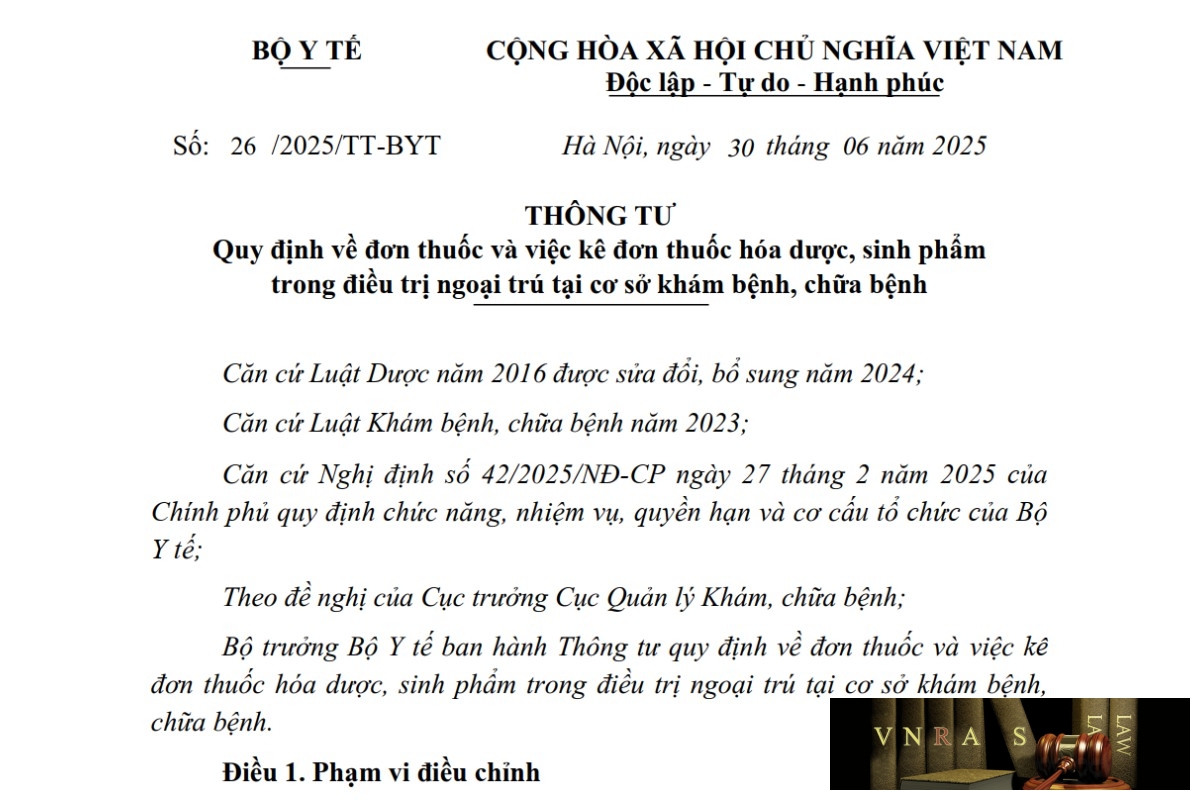 Bộ trưởng Bộ Y tế ban hành Thông tư quy định về đơn thuốc và việc kê đơn thuốc hóa dược, sinh phẩm trong điều trị ngoại trú tại cơ sở khám bệnh, chữa bệnh.