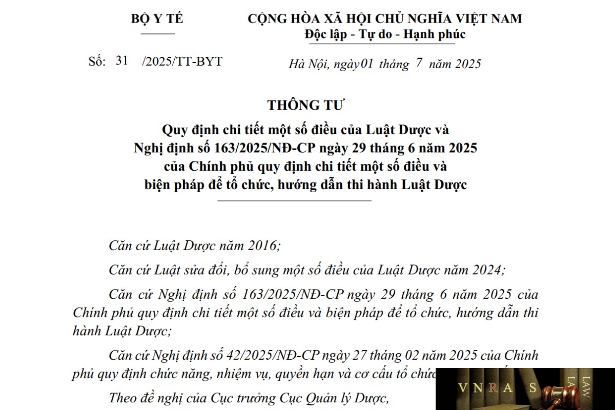 Bộ trưởng Bộ Y tế ban hành Thông tư quy định chi tiết một số điều của Luật Dược và Nghị định số 163/2025/NĐ-CP ngày 29 tháng 6 năm 2025 của Chính phủ quy định chi tiết một số điều và biện pháp để tổ chức, hướng dẫn thi hành Luật Dược.